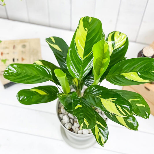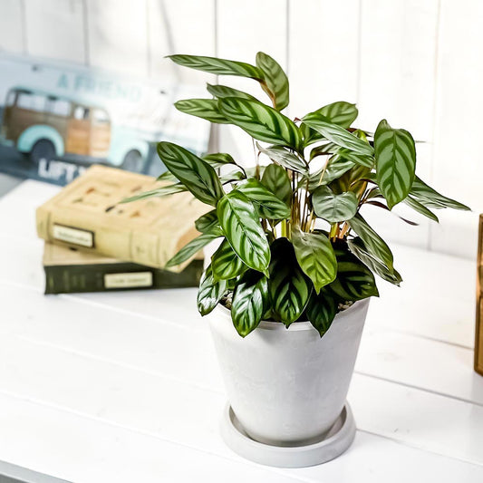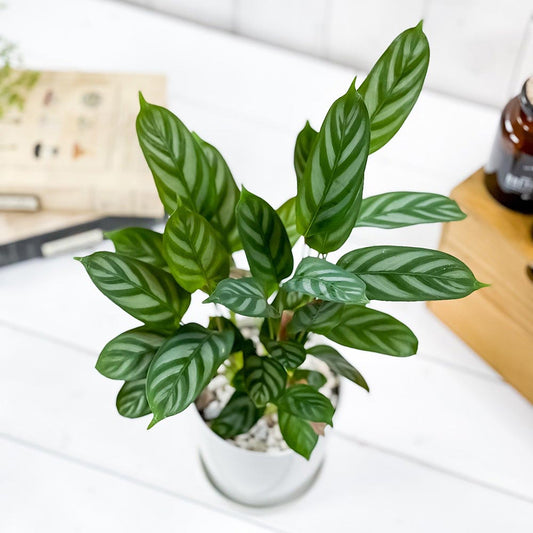 PLANCHU 観葉植物 カラテア セトサ 5号樹脂鉢 ホワイト サスティー付き 受け皿付き 育て方説明書付き Ctenanthe setosa クテナンテ