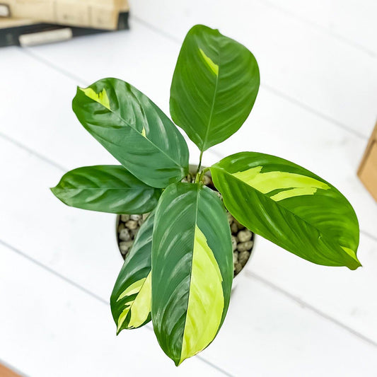 PLANCHU 観葉植物 クテナンテ ルベルシアナ 4号鉢 受け皿付き 育て方説明書付き Ctenanthe lubbersiana カラテア