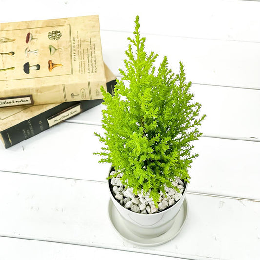PLANCHU 観葉植物 コニファー ゴールドクレスト ウィルマ 3.5号鉢 受け皿付き 育て方説明書付き Cupressus macrocarpa ‘Wilma’ 庭木 植木 針葉樹 クリスマスツリー