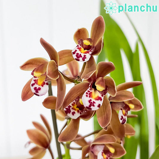 PLANCHU 東洋ラン キンリョウヘン 3.5号鉢 受け皿付き 育て方説明書付き Cymbidium floribundum 金稜辺 ミツバチラン シンビジウム シンビジューム フロリバンダム