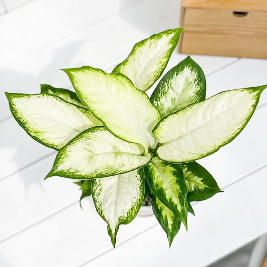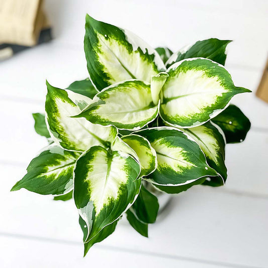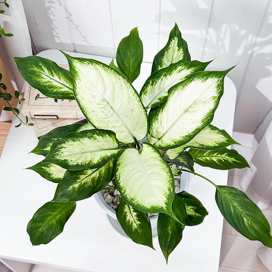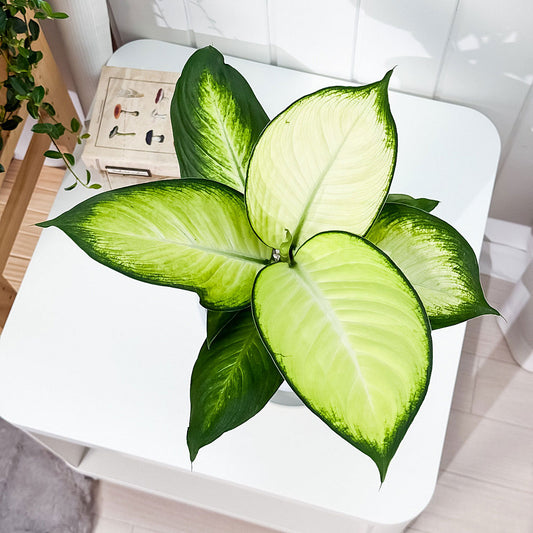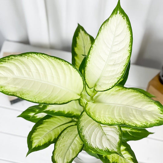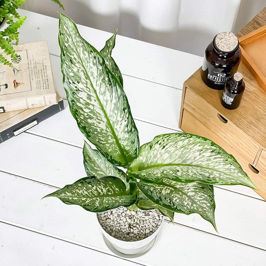 PLANCHU 観葉植物 ディフェンバキア クールビューティー 4号鉢 受け皿付き 育て方説明書付き PVP Dieffenbachia ‘Cool Beauty’ アロイド