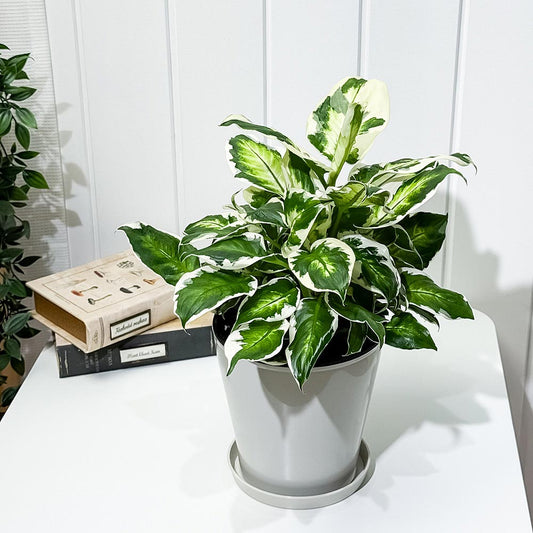 PLANCHU 観葉植物 ディフェンバキア クールビューティー 5号鉢 受け皿付き 育て方説明書付き PVP Dieffenbachia ‘Cool Beauty’ アロイド