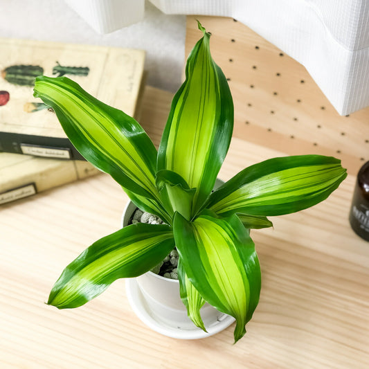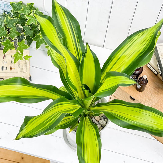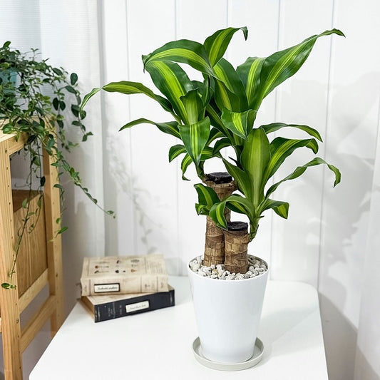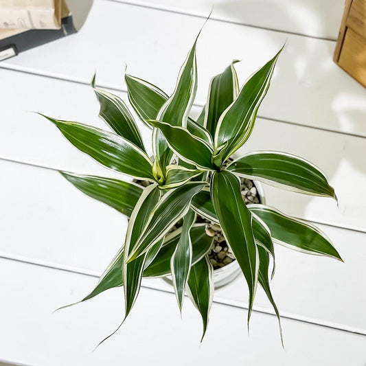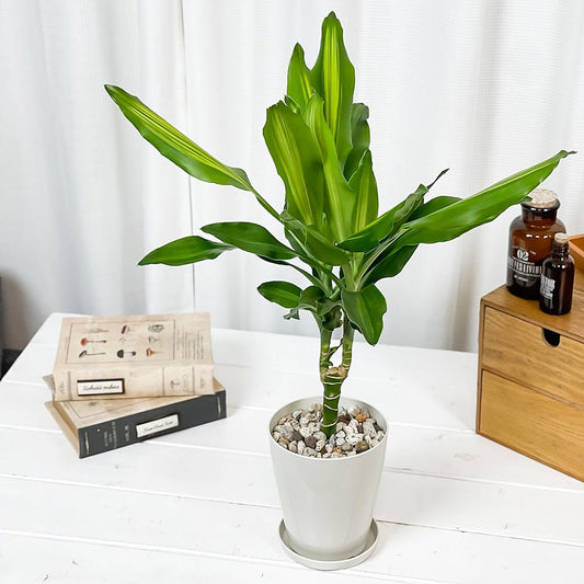 PLANCHU 観葉植物 ドラセナ ファニータ 5号樹脂鉢 ホワイト サスティー付き 受け皿付き 育て方説明書付き スルクローサ ゴッドセフィアナ 激レア品種