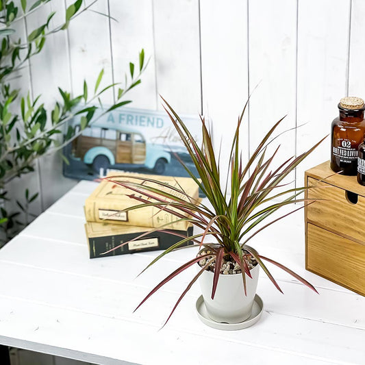 PLANCHU 観葉植物 ドラセナ マルギナータ レインボー 4号樹脂鉢 ホワイト サスティー付き 受け皿付き 育て方説明書付き 真実の木 マジナータ コンシンネ
