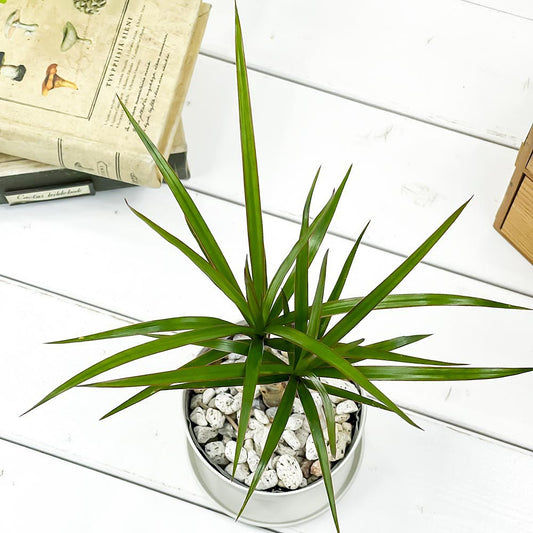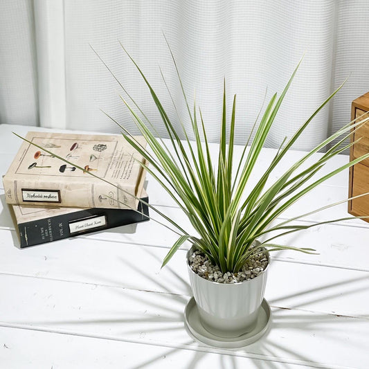 PLANCHU 観葉植物 ドラセナ マルギナータ ホワイトボリー 4号鉢 受け皿付き 育て方説明書付き Dracaena marginata ‘Whivory’ 真実の木 マジナータ コンシンネ コンシナ