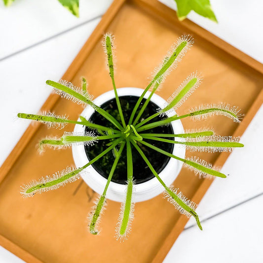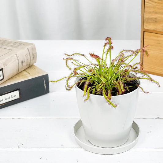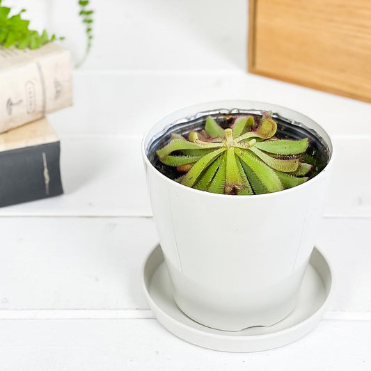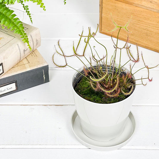 PLANCHU 食虫植物 ドロセラ カペンシス 白花 3号丸鉢 受け皿付き 育て方説明書付き Drosera capensis アフリカナガバモウセンゴケ