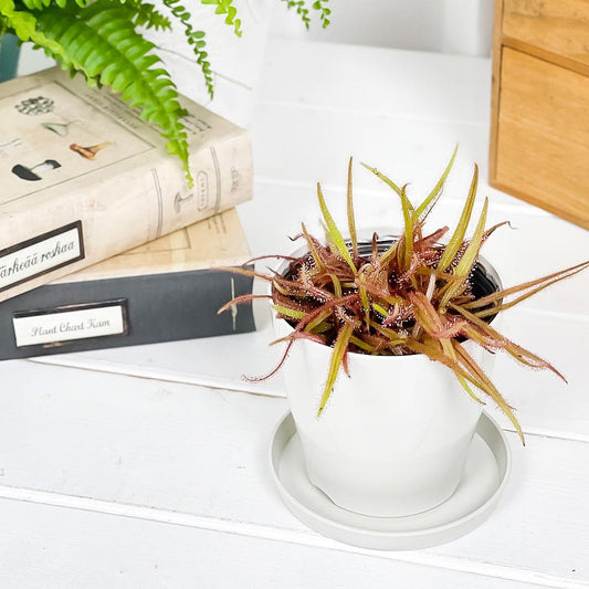 PLANCHU 食虫植物 ドロセラ ハミルトニー 3.5号鉢 受け皿付き 育て方説明書付き Drosera hamiltonii モウセンゴケ