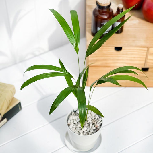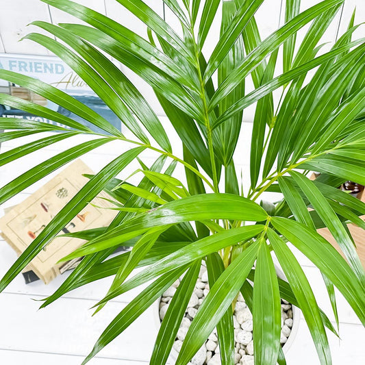 PLANCHU 観葉植物 アレカヤシ 7号樹脂鉢 カーヴホワイト 受け皿付き 育て方説明書付き Dypsis lutescens ディプシス ヤシ コガネタケヤシ ヤマドリヤシ