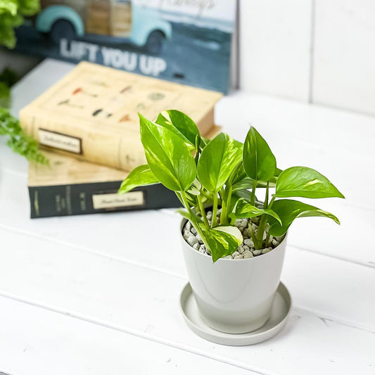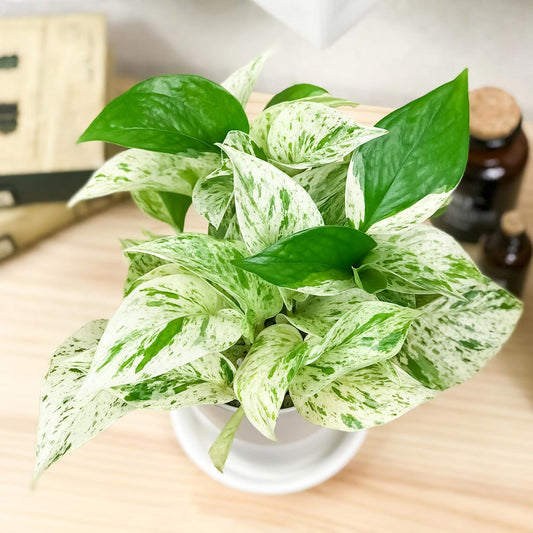 PLANCHU 観葉植物 ポトス マーブルクイーン 3.5号鉢 受け皿付き 育て方説明書付き Epipremnum aureum ‘Marble Queen’ エピプレムナム アロイド