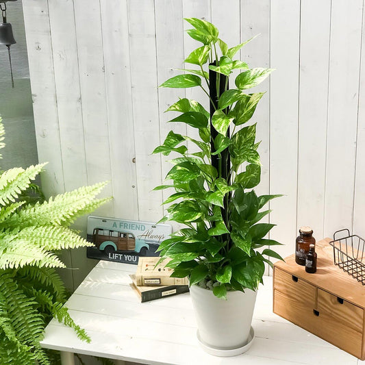 PLANCHU 観葉植物 ポトス ゴールデン ヘゴ仕立て 7号鉢 受け皿付き 育て方説明書付き Epipremnum aureum エピプレムナム アロイド
