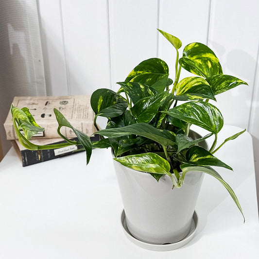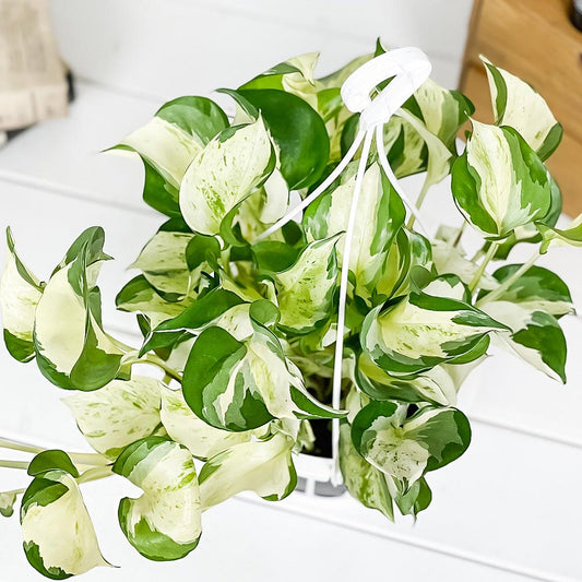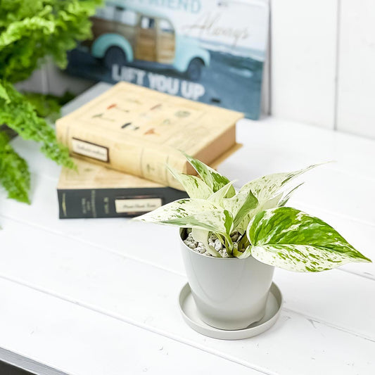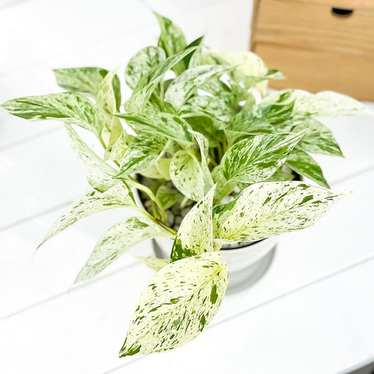 PLANCHU 観葉植物 ポトス マーブルクイーン 4号鉢 受け皿付き 育て方説明書付き Epipremnum aureum ‘Marble Queen’ エピプレムナム アロイド