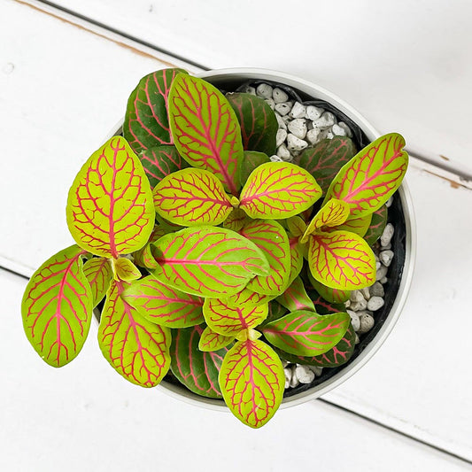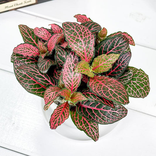 PLANCHU 観葉植物 フィットニア おまかせ ピンク系 3.5号鉢 受け皿付き 育て方説明書付き Fittonia albivenis cv. アミメグサ