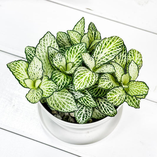 PLANCHU 観葉植物 フィットニア おまかせ ホワイト系 3.5号鉢 受け皿付き 育て方説明書付き Fittonia albivenis cv. アミメグサ