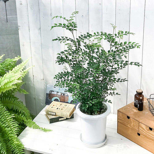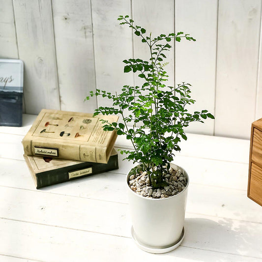PLANCHU 観葉植物 シマトネリコ 5号樹脂鉢 ホワイト サスティー付き 受け皿付き 育て方説明書付き Fraxinus griffithii 苗 苗木 鉢植え 株立ち