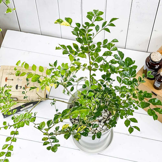 PLANCHU 観葉植物 シマトネリコ 斑入り 3.5号鉢 受け皿付き 育て方説明書付き Fraxinus griffithii 苗 苗木