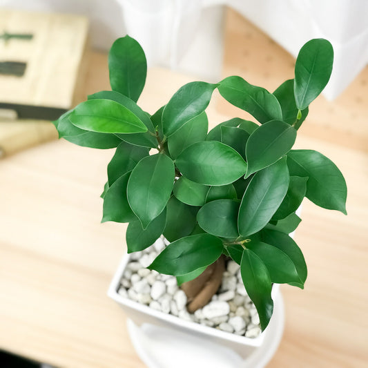 PLANCHU 観葉植物 ガジュマル ベビーリーフ 4号鉢 受け皿付き 育て方説明書付き フィカス 矮性ガジュマル ゴムノキ ゴムの木