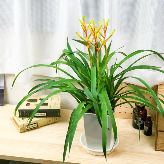 PLANCHU 観葉植物 グズマニア ディシティフローラ メジャー 4号鉢 受け皿付き 育て方説明書付き Guzmania dissitiflora ‘Major’ ブロメリア