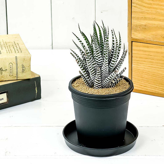 PLANCHU 多肉植物 ハオルチオプシス ゼブラ 3号鉢 受け皿付き 育て方説明書付き Haworthiopsis fasciata cv. ハオルチア 十二の巻 ワイドバンド