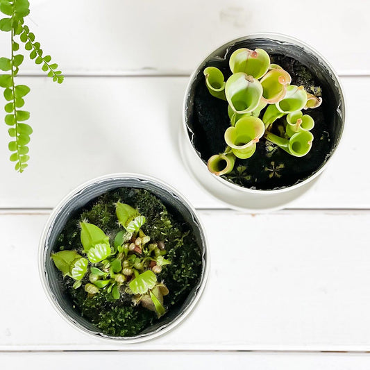 PLANCHU 食虫植物 セファロタス & ヘリアンフォラ 2種セット 3.5号鉢 受け皿付き 育て方説明書付き