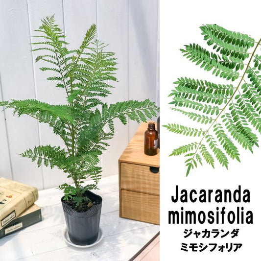 PLANCHU 観葉植物 ジャカランダ ミモシフォリア 4号鉢 受け皿付き 育て方説明書付き Jacaranda mimosifolia 熱帯花木 世界三大花木 紫雲木