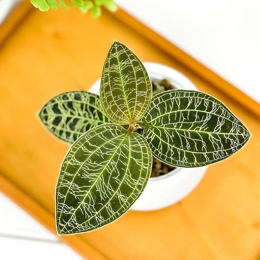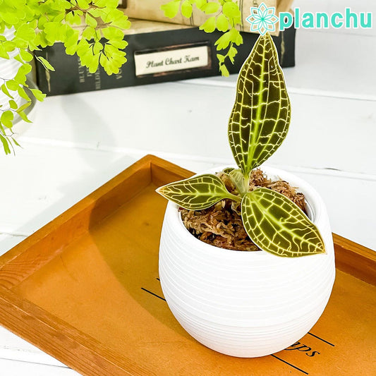 PLANCHU ジュエルオーキッド マコデス サンデリアーナ 3号丸鉢 受け皿付き 育て方説明書付き Macodes sanderiana 観葉植物 洋ラン