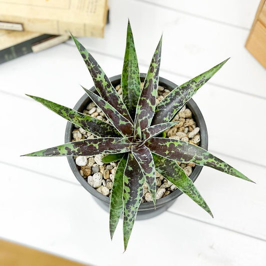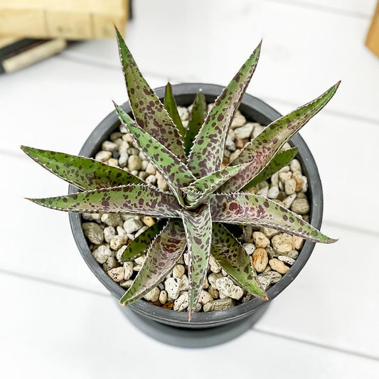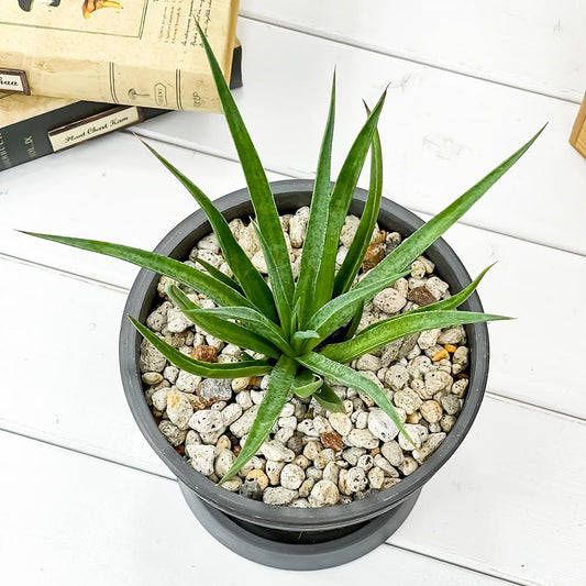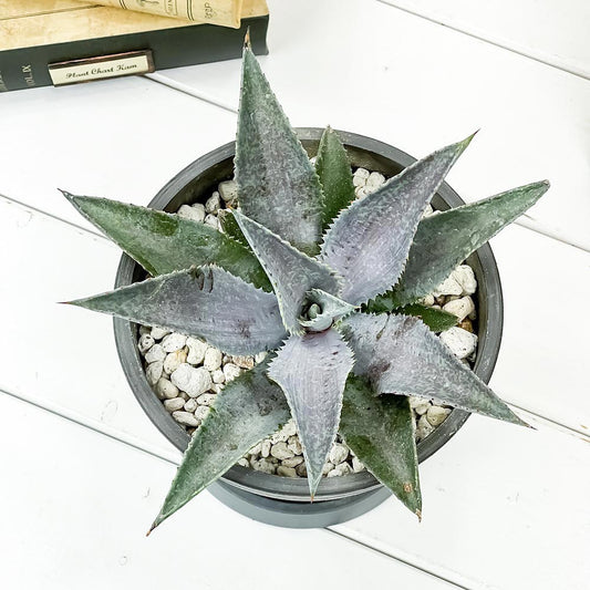 PLANCHU 観葉植物 マンガベ フレックルアンドスペックル 5号樹脂鉢 カーヴダークグレー サスティー付き 受け皿付き 育て方説明書付き PVP アガベ マンフレダ 多肉植物