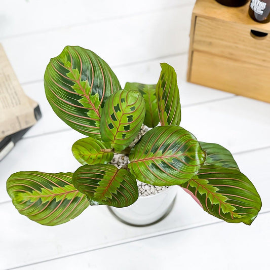 PLANCHU 観葉植物 マランタ ボスタス 6号鉢 受け皿付き 育て方説明書付き Maranta leuconeura var. erythroneura レウコネウラ カラテア