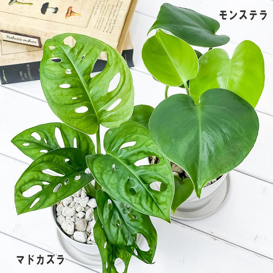 PLANCHU 観葉植物 モンステラ & マドカズラ 2種セット 3.5号鉢 受け皿付き 育て方説明書付き