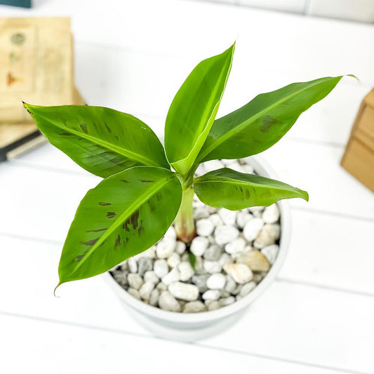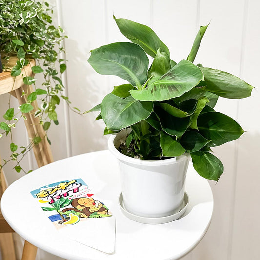 PLANCHU 熱帯果樹 モンキーバナナ 7号樹脂鉢 カーヴホワイト 受け皿付き 育て方説明書付き Musa acuminata ‘Senorita’ セニョリータバナナ 果樹苗 観葉植物