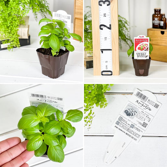 PLANCHU ハーブ苗 スイートバジル 4号鉢 受け皿付き 育て方説明書付き フレッシュハーブ コンパニオンプランツ ベランダ菜園 家庭菜園