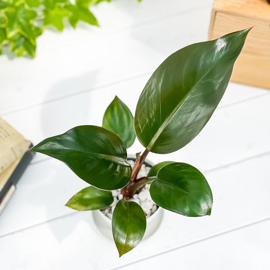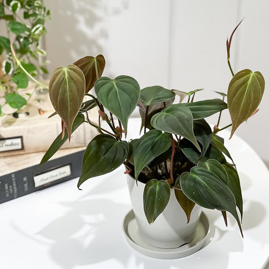 PLANCHU 観葉植物 フィロデンドロン ミカンス 3.5号鉢 受け皿付き 育て方説明書付き Phillodendron micans アロイド