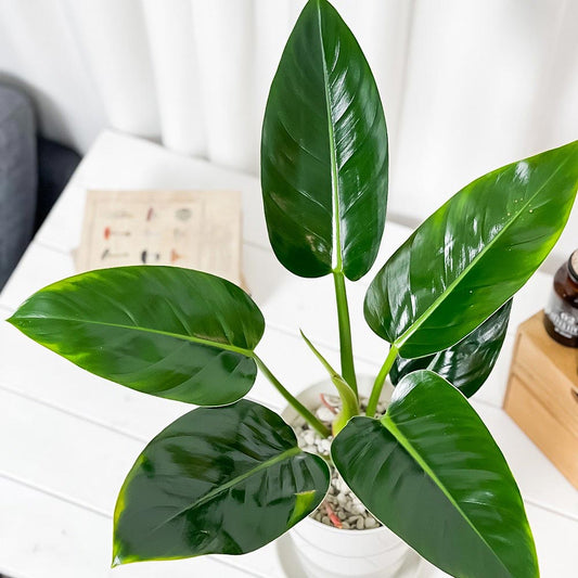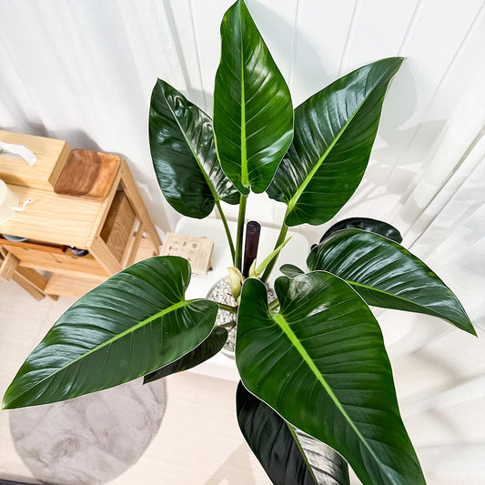 PLANCHU 観葉植物 フィロデンドロン ロジョコンゴ 8号鉢 受け皿付き 育て方説明書付き Philodendron ‘Rojo Congo’ アロイド 大鉢 充実株