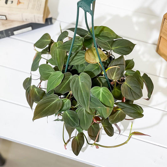 PLANCHU 観葉植物 フィロデンドロン ミカンス 5号吊り鉢 育て方説明書付き Phillodendron micans アロイド