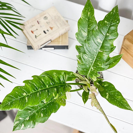 PLANCHU 観葉植物 フィロデンドロン リングオブファイア 5号鉢 受け皿付き 育て方説明書付き Philodendron ‘Ring Of Fire’ リングオブファイヤー アロイド 斑入り レア品種