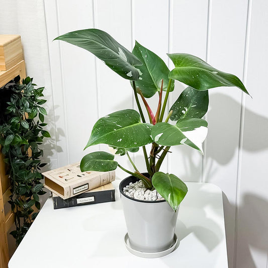 PLANCHU 観葉植物 フィロデンドロン ホワイトプリンセス 5号鉢 受け皿付き 育て方説明書付き Philodendron ‘White Princess’ アロイド