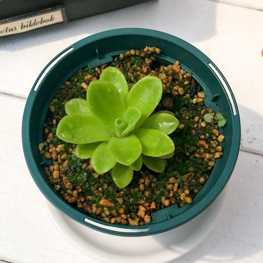 PLANCHU 食虫植物 ピンギキュラ ティナ × エマルギナータ 3号丸鉢 受け皿付き 育て方説明書付き Pinguicula tina × emarginata ムシトリスミレ
