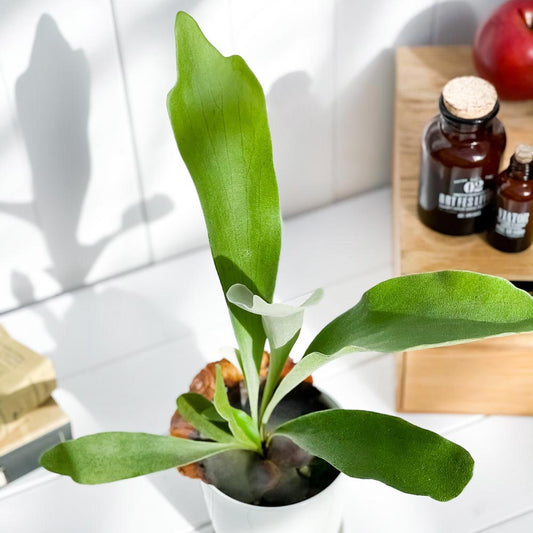 PLANCHU 観葉植物 プラティケリウム アルキコルネ 3.5号鉢 受け皿付き 育て方説明書付き Platycerium alcicorne アルシコルネ ビカクシダ コウモリラン シダ植物