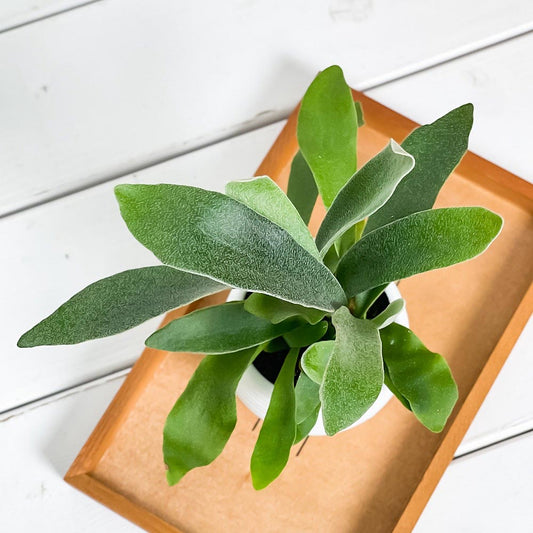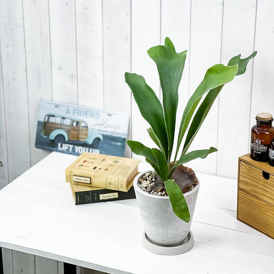 PLANCHU 観葉植物 プラティケリウム ネザーランズ 5号樹脂鉢 ホワイト サスティー付き 受け皿付き 育て方説明書付き ネザーランド ビカクシダ コウモリラン シダ植物