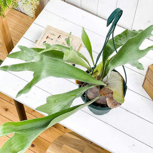 PLANCHU 観葉植物 プラティケリウム ステマリア 6号吊り鉢 育て方説明書付き Platycerium stemaria ビカクシダ コウモリラン シダ植物