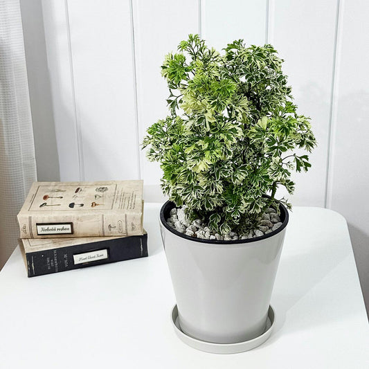 PLANCHU 観葉植物 ポリシャス スノープリンセス 5号鉢 受け皿付き 育て方説明書付き Polyscias ‘Snow Princess’