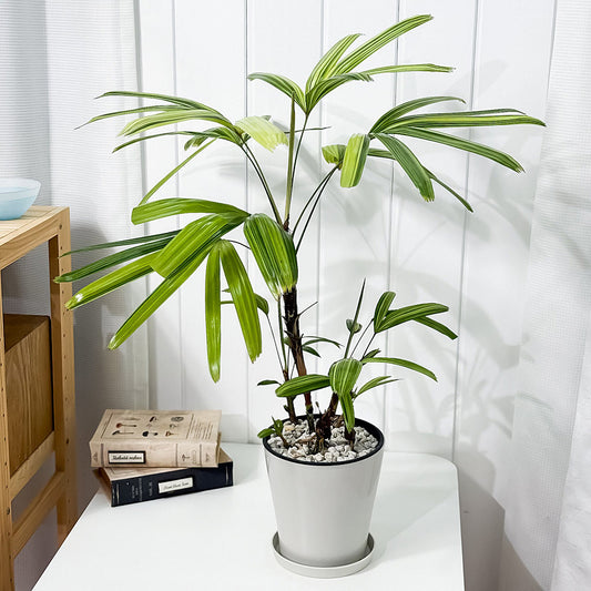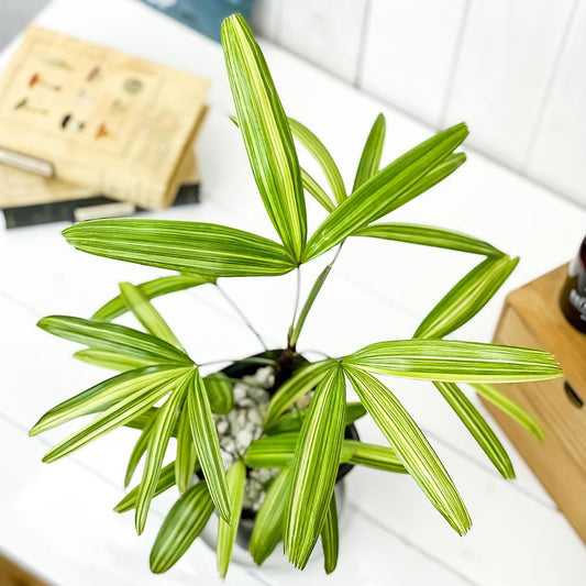 PLANCHU 観葉植物 カンノンチク アヤニシキ 5号鉢 受け皿付き 育て方説明書付き Rhapis excelsa ‘Ayanishiki’ ラピス エクスケルサ 観音竹 綾錦 ヤシ