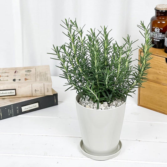 PLANCHU ハーブ苗 ローズマリー マリンブルー 4号鉢 受け皿付き 育て方説明書付き Salvia rosmarinus ‘Marine Blue’ 立性