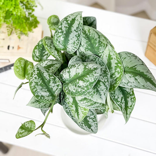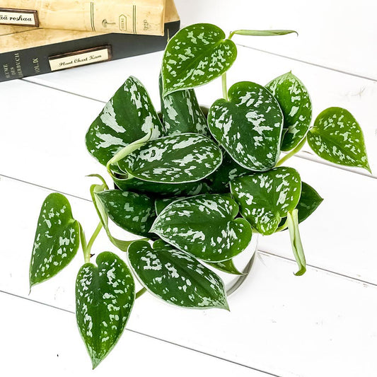 PLANCHU 観葉植物 スキンダプサス オルモストシルバー 4号吊り鉢 育て方説明書付き Scindapsus pictus ‘Almost Silver’ アロイド