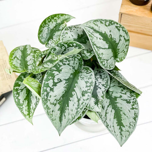 PLANCHU 観葉植物 スキンダプサス オルモストシルバー 3.5号鉢 受け皿付き 育て方説明書付き Scindapsus pictus ‘Almost Silver’ アロイド