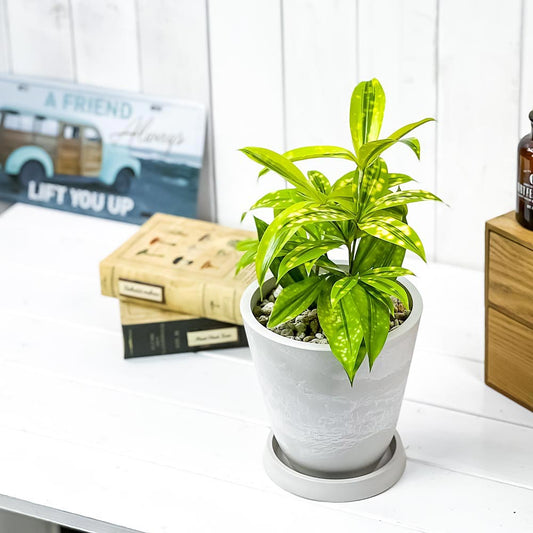 PLANCHU 観葉植物 ドラセナ ファニータ 5号樹脂鉢 ホワイト サスティー付き 受け皿付き 育て方説明書付き スルクローサ ゴッドセフィアナ 激レア品種