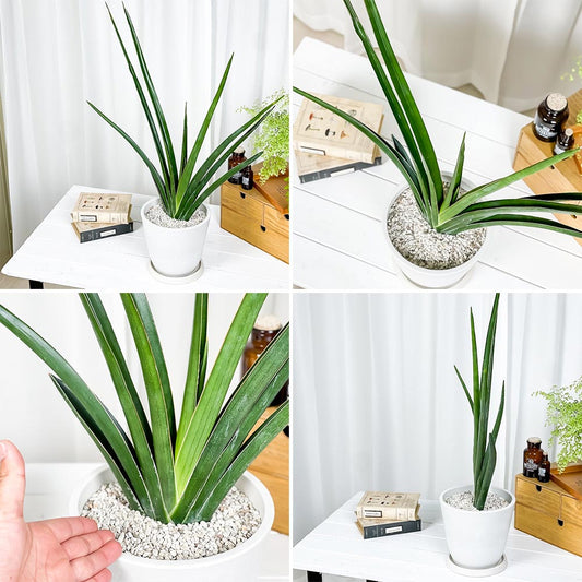 PLANCHU 観葉植物 サンセベリア カタナ 7号樹脂鉢 ホワイト サスティー付き 受け皿付き 育て方説明書付き Sansevieria ‘Katana’ サンスベリア