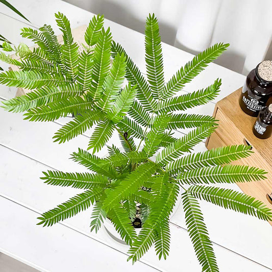 PLANCHU 観葉植物 エバーフレッシュ 5号樹脂鉢 ホワイト サスティー付き 受け皿付き 育て方説明書付き Cojoba arborea var. angustifolia ネムノキ
