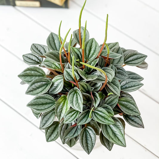 PLANCHU 観葉植物 ペペロミア ナポリナイツ 4号樹脂鉢 ホワイト サスティー付き 受け皿付き 育て方説明書付き PVP Peperomia ‘Napoli Nights’