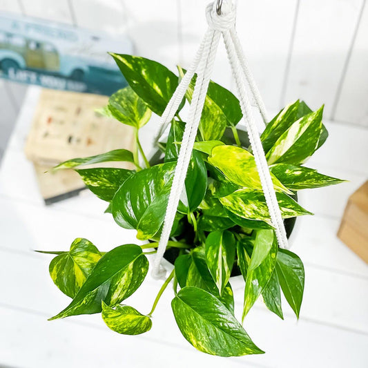 PLANCHU 観葉植物 ポトス マーブルクイーン 5号鉢 樹脂製ハンギング鉢カバー付き 育て方説明書付き エピプレムナム アロイド