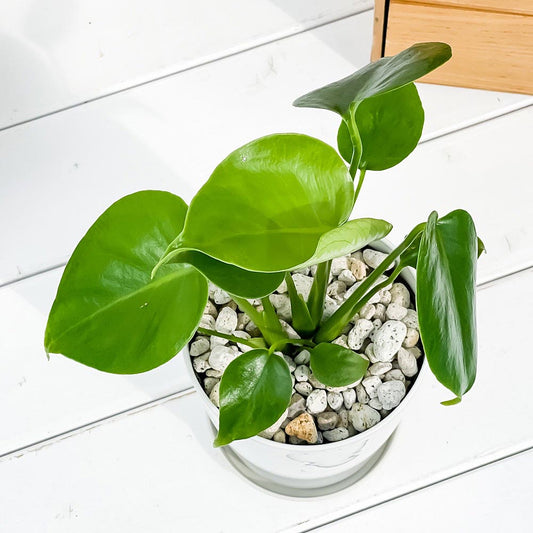 PLANCHU 観葉植物 モンステラ ジェイドシャトルコック 4号鉢 受け皿付き 育て方説明書付き Monstera karsteniana `Jade Shuttlecock’ アロイド